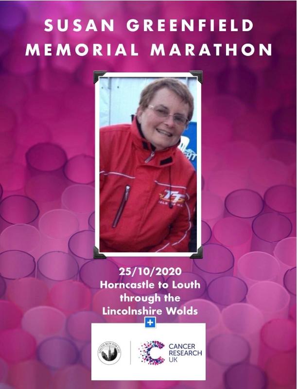 The marathon is through Lincolnshire wolds through places that ment a lot to my mum. So join me run a bit all the way, all I am asking is that you get sponsors. Support me in raising money in memory of my mum Susan Greenfield who died September 2019 from cancer and my Nanna Joyce hardy who died in February 2019 from Cancer as well . This is my story but I am doing this to support the research into Cancer treatments and cures .I'm raising money for Cancer Research UK and your contribution will make an impact whether you donate £5 or £500.