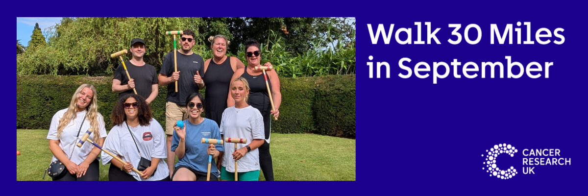 Thanks for visiting our fundraising page! Stacey, Dom, Jess, Tia, Mika, and Bella have pledged to walk 30 miles each throughout September to raise funds for Cancer Research UK. Follow our socials and this page for weekly updates on our progress! #TheDreamTeam